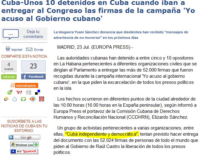 Un grupo de activistas pertenecientes a varias organizaciones, entre ellas, «Cuba Independiente y Democrática», tenían previsto hacer entrega del documento con las 52.024 firmas de personas de todo el mundo que piden al Gobierno de Raúl Castro la liberación de todos los presos políticos.