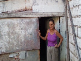 Resido en el lugar desde el año 1994, tengo dos hijos que presentan problemas de psiquiatría, soy una mujer divorciada y no recibo pensión alguna por parte del estado. Vivo desde hace 12 años en una casa con las paredes de zinc, el techo está en pésimas condiciones, cuando llueve el agua se cuela por la cubierta y penetra por las paredes haciendo dentro de mi domicilio un arroyo de aguas turbias. Nuestras camas tienen cartones como colchones. Los equipos electrodomésticos de la cocina están rotos y no los hemos podido arreglar por no tener dinero. El agua potable nos llega cada seis días.