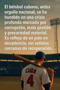 El artículo describe cómo el béisbol cubano, antes orgullo nacional, se ha hundido en una crisis profunda marcada por corrupción, mala gestión y precariedad material. Detalla robos de equipamiento en el estadio Victoria de Girón, falta de combustible para el transporte de los equipos, pésimas condiciones en hoteles y terrenos, y cambios arbitrarios de directores y árbitros. Denuncia la responsabilidad de la Federación Cubana de Béisbol y de su presidente, así como decisiones absurdas como enviar a la Serie del Caribe un conjunto desactualizado y armado a base de refuerzos. Concluye que la pelota cubana es hoy reflejo de un país en decadencia, sin señales cercanas de recuperación.
