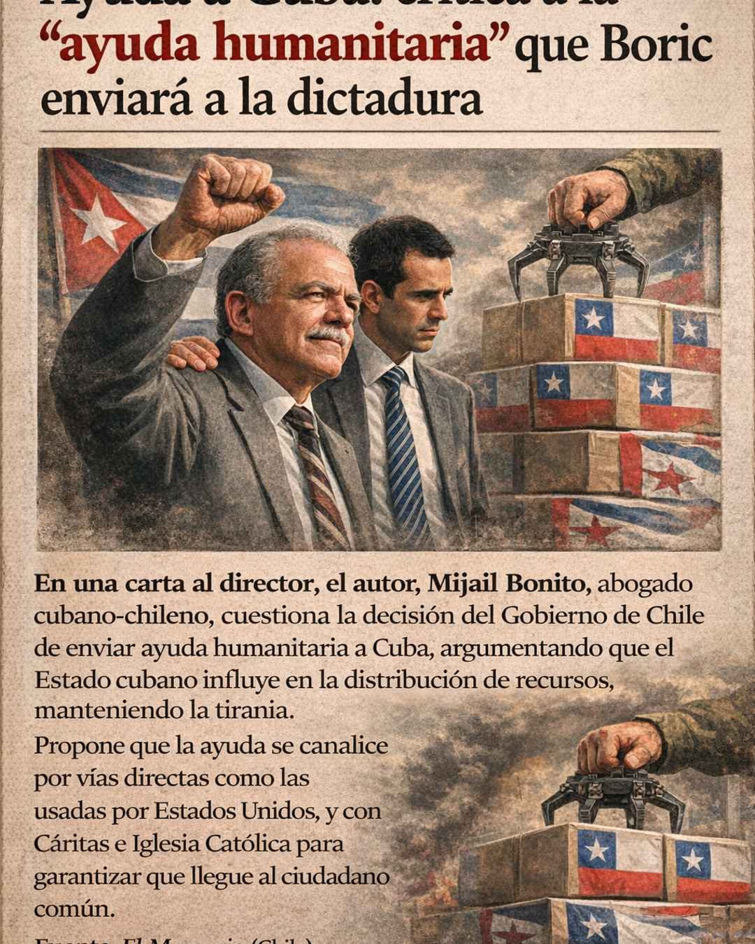 CHILE: Presidente electo en desacuerdo con envío de ayuda al castrismo – Noticuba Febrero 16 2026 Por InfoCID|2026-02-17T15:41:54-06:0017 febrero, 2026|Noticuba| 0