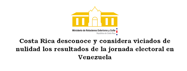 Costa Rica desconoce y considera viciados de nulidad los resultados de la jornada electoral en Venezuela