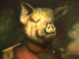 “Doce voces gritaban enfurecidas, y eran todas iguales. No había duda de la transformación ocurrida en las caras de los cerdos. Los animales asombrados, pasaron su mirada del cerdo al hombre, y del hombre al cerdo; y, nuevamente, del cerdo al hombre; pero ya era imposible distinguir quién era uno y quién era otro”.