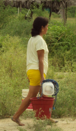 Por la falta de condiciones, nuestras necesidades las tenemos que realizar monte adentro, el agua potable la tenemos que cargar a una distancia de un kilómetro, y nos abastecemos de agua de lluvia para realizar otras tareas del hogar cuando las condiciones climatológicas nos lo permiten.