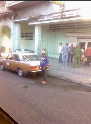 Al parecer fuimos delatados por un esbirro ya que inmediatamente como de la nada apareció una patrulla y varios agentes de la seguridad. Uno de los activistas trató de confundirse entre los clientes que hacían fila en del Banco para salvar las copias del semanario pero el operativo ya estaba montado y fue también detenido de inmediato.