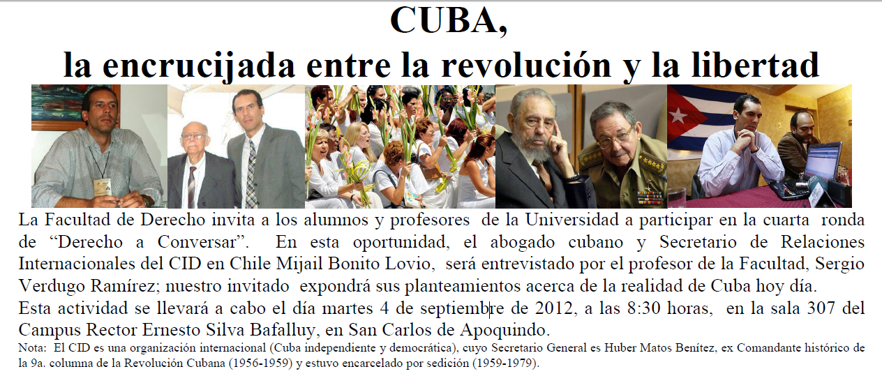 La democracia asambleísta cubana, el poder judicial orientado por el consejo de Estado, la nula participación de los ciudadanos en la toma de decisiones, la economía, la educación gratuita y los medios de difusión masiva como propiedad estatal, fueron los principales temas que se abordaron en la charla.