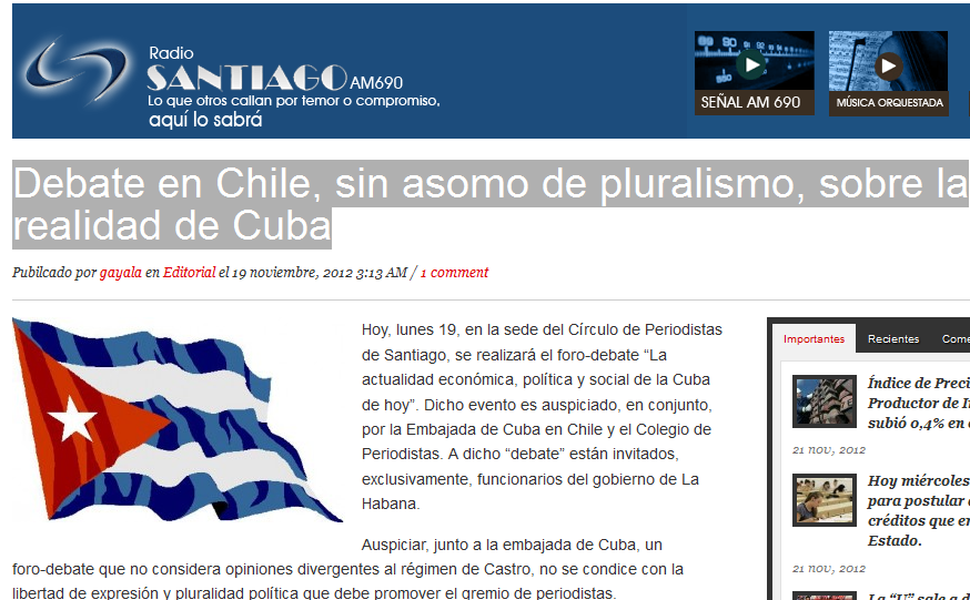 Diario de Cuba, Santiago de Chile, 19-11-2012