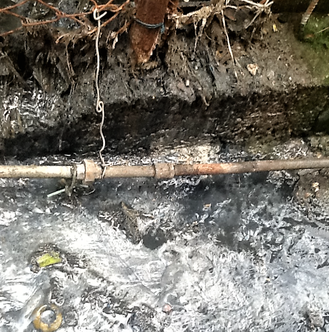 Desde hace meses la tubería principal, donde descargan las aguas albañales de todas las viviendas del reparto Mulgoba esta tupida y se reventó en algún punto del reparto. Las aguas albañales, se están saliendo para la calle.