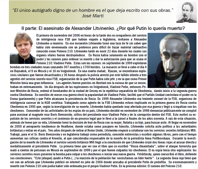 Reportaje especial del semanario La Nueva República precedido por El crimen casi perfecto: El asesinato de Alexander Litvinenko