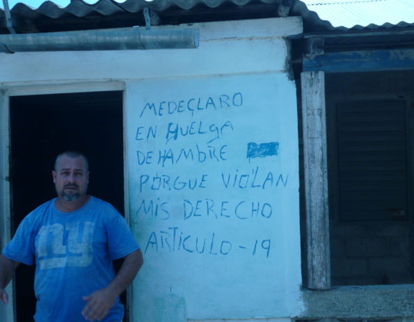 Desde el pasado jueves 15 hasta el día hoy lunes 10 Ever estuvo detenido en el municipio de Banes, tiempo durante el cual se negó a ingerir ni alimentos ni agua. El esbirro le dijo que no le iban a devolver los equipos y que además lo iban a acusar de desobediencia, resistencia y desorden público. El robo de un computador y un impresor lo habían hecho días atrás durante un registro en su casa sin hacer un acta de decomiso. Por protestar lo llevaron preso por primera vez.