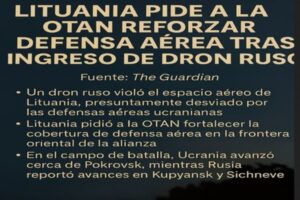 Después de que un dron ruso, probablemente desviado por las defensas ucranianas, violara el espacio aéreo de Lituania, ese país solicitó una respuesta urgente de la OTAN. El incidente refuerza la preocupación por la seguridad de la frontera oriental de la alianza. Mientras tanto, en el frente de batalla, Ucrania logró avances cerca de Pokrovsk, y Rusia hizo progresos en la zona de Kupiansk y el pueblo de Sichneve.