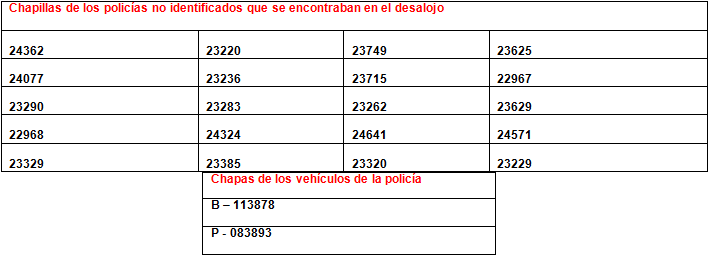 Los que más se destacaron en darles golpes y llevarse presos a los miembros de esta familia fueron el Delegado del MININT del Municipio Santiago de Cuba, Antonio Suiro Coronado, el Jefe de la 3ra estación de la policía, el Mayor Yoeldis Castillo Quiala, la oficial Yaima Montero Vaillant y el Jefe de Sector de Sigua Edgardo Torres Pereira, acompañados de más de 20 policías que fueron identificados por sus número de chapilla por la Defensoría del Pueblo.