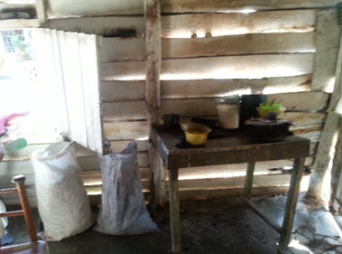 El techo está en muy mal estado y nos mojamos cuando llueve, cocino con leña, no tenemos equipos electrodomésticos por consiguiente no tenemos donde guardar los alimentos y la leche de los niños se nos echa a perder por falta de frio.