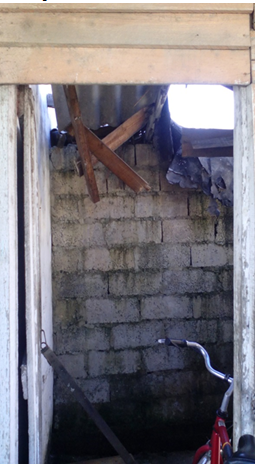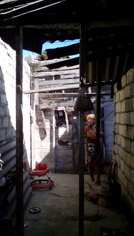 La vivienda no cuenta con servicio sanitario, ni agua potable, siendo más crítico su estado constructivo ya que está en derrumbe la cubierta, lo que provoca cuando llueve que se mojen sus escasas pertenencias y los niños, donde por necesidad y obligación esta joven tiene que tener a sus hijos, abuela y hermano, a la vez que no han recibido ayuda alguna del gobierno ni seguridad social.