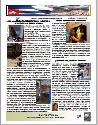 Junio 12 de 2015. En estos momentos acaban de ser arrestados por la policía en Santa Clara, Maiko A Cepeda Mena y Carlo Rodríguez Becerra, ambos se encontraban en la calle distribuyendo la edicion 168 A de La Nueva República.