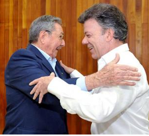 da lastima que santos se atreba a compartir tan cerca con el dictador raul castyro y fidel castro cuando fidel y raul an sido fieles patrocinadores y los principales aliados de la gerrilla de las FAR UN GRUPO TERRORISTA Y DE ASECINOS QUE FIDEL Y RAUL LOS AN APOLLADO POR LARGO TIEMPO CON ARMAS Y DINERO Y COMPRANDOLE DROGAS PARA LA FINANCIASION DE LA COCHINA GUERRILLA